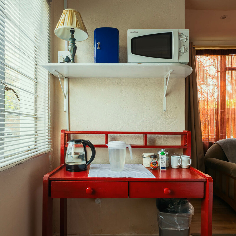 Enjoy the simplicity and comfort of the room, complete with a coffee station offering coffee and tea, a microwave, and a kettle.