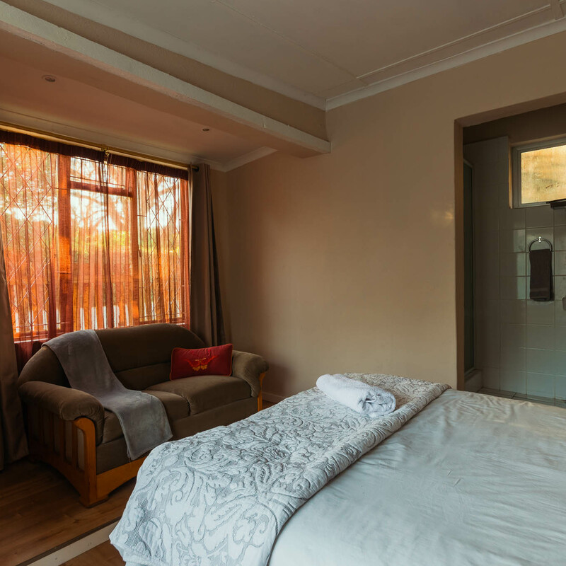 This charming space features a comfortable double bed and an en suite shower and toilet for your convenience.
